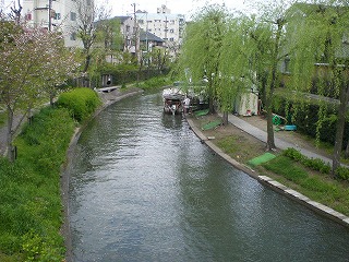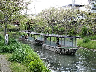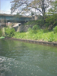 伏見城の外堀の濠川(ほりかわ)。舟が運搬手段だった頃に荷物を運んだという三十石舟や十石舟を利用した観光船が運航しています。で、時間に余裕もあるし、せっかく来たので、往復55分コースの十石舟に乗船してみることにしました。