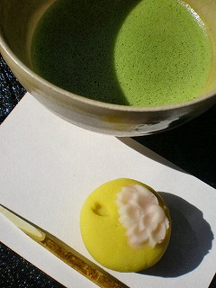 園内の吹上茶屋でお抹茶セットをいただきながら、一休み。季節の和菓子にも春が感じられました。。