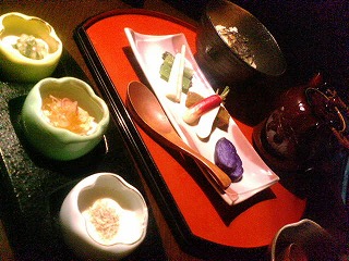 自家製という奴豆腐は「山形のだし」「醤油ジュレ」「とろろ昆布」の3つの味が楽しめます。そして、牛タンの溶岩焼きに、京風ぶぶ茶漬け。すでにお腹いっぱいになりつつある私にはお茶づけよりも、お茶づけに付いてきたお漬物が種類があって美味しかったです。