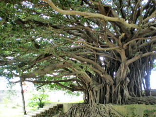 門をくぐって中に入ると広場のようなスペースの端の方にとても大きなガジュマルの木があります。まるで精霊でも宿っているかのような雰囲気。。この地に何年あるのだろう…と思うくらい、本当に大きな木でした。