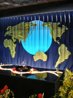 もう1つの特別展示は「地球を考える空間 ~高円宮妃久子殿下のディスプレイ~」。世界地図の前のテーブルには蘭の花が並べられていました。