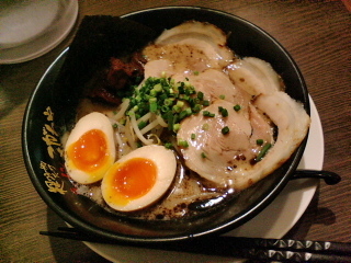 注文したのは1日50食限定の特製ラーメン。チャーシュー、角煮、半熟玉子、もやし、海苔と、全トッピングされたとんこつラーメンです。まっすぐな細麺がスープに絡むと美味しく、スープまで完食でした。