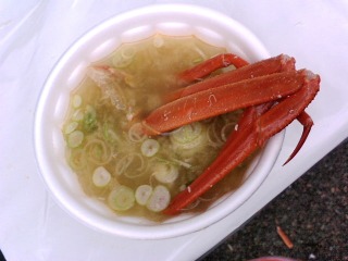目移りしながら会場を一回りして食べたのは、カニ汁。カニ足が3本入って1杯200円という安さです。もちろんカニ足には身もしっかりと入っており、美味しくいただきました。