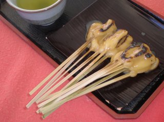 境内にある甘味処のあぶり餅が有名らしく、甘い味噌だれがかかった小さなお餅は12ヶで630円。焼きたてをいただくことができます。