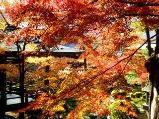 大覚寺の境内はとても広く、回廊で結ばれた御堂や御殿を見て回ることができます。庭の紅葉も真っ赤に色づき、眺めているだけで癒されます。