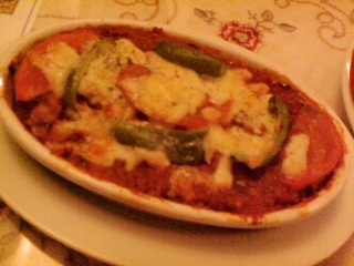 メインのシシケバブ。串が外され並べられたラム肉は一口サイズで食べやすく、やわらかいお肉でした。そして、最後の一品は、トマト味のひき肉と茄子を交互に敷かれたムッサカ。トマトソースのラザニアに似た感じの味です。