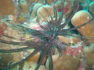 シパダンでは大物ばかりに目が行きますが、もちろんかわいい魚たちも。オトヒメエビとミノカサゴ。