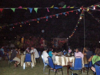 19:30開始のパーティはレストランではなく、屋外で。パーティでのゲスト紹介でさまざまな国からこのリゾートに来ていることを知りました。日本、イタリア、フランス、ドイツ、オーストラリア、アメリカ、中国、台湾、マレーシア…かなり国際色豊か。ゲーム大会が盛り上がります。
