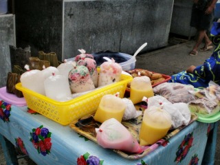 甘そうな飲み物(だと思う)は、ビニール袋に入れて売られています。