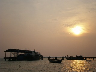 港町のタワウ。海に沈んでいく夕陽を眺めることができます。散策途中、海沿いの道に腰掛け眺めた夕日は、ゆったりとした気持ちにさせてくれました。