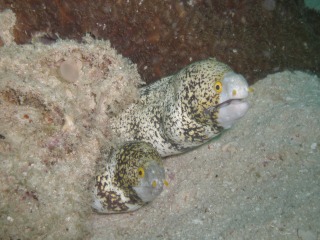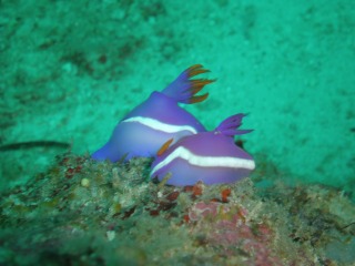 ウツボが2匹。同じ穴から顔を出して周囲をうかがっている様子はちょっと可愛い。ウミウシも何種類も見つけることができました。