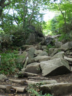 その後、せっかくここまで来たのなら奇岩怪石群をめぐってみようということで、ロープウェイではなく、歩いてつつじヶ丘駅まで下山することにしました。こちらのコースは、一応、道はあるものの岩だらけ。。下りるのにも一苦労。徐々に足の負担がきつくなってきます。。