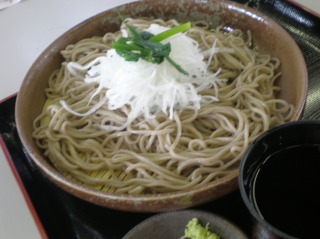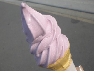 レストハウスで休憩と昼食。夏季限定のニラ大根そばをいただきました。ニラと大根の千切りが載っているだけのいたって普通のおそばです。そして、デザートに食べた山ぶどうソフトクリームはジェラードのような食感。がんばった自分へのちょっとしたご褒美です。