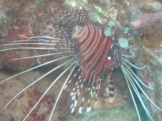 岩の隙間にはネッタイミノカサゴ。イソギンチャクの裏側にはエビが隠れていました。。