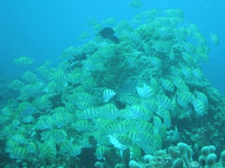 魚の群れに、カメ。かなり近くまで寄って見ることができました。