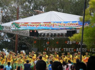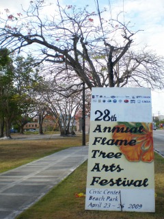 今日は午後からフレームツリーアートフェスティバルに行きました。シャトルバスで会場近くのワールドリゾートホテルまで行き、シビックセンターへと向かいます。このフェスティバルは地元の方たちのお祭りとのこと。会場近くには看板も出ています。