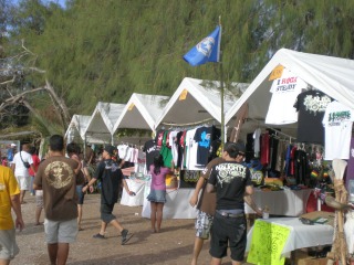 会場に入ると、テントのお店がいくつも並んでいます。Tシャツ類やアクセサリーや絵画など、お店に並べられているものは様々。飲食店のテントもあり、フリーマーケットのような感じです。