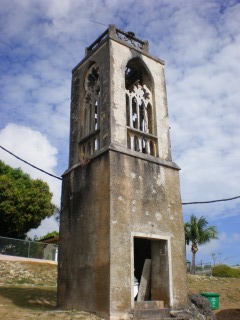 まずは、DFSギャラリア前のビーチロードを南方面へ。ガラパン教会のそばにあるクリスト・ライ鐘楼(Kampanian Kristo Rai)があります。1932年に建造されたこの建物は、老朽化が進み、少し傾斜して建っています。