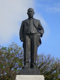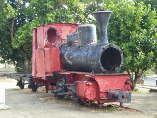 道を渡ったところにある砂糖王公園(Sugar King Park)。園内には、サトウキビ事業で成功し、シュガーキングと呼ばれた松江春次の像と、サトウキビを運搬した蒸気機関車があります。