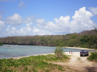 昨晩の深夜にサイパンに到着し、今日と明日の2日間は朝からダイビングです。現地ダイビングサービスにピックアップしてもらい、ダイビングポイントのあるビーチへ。移動中の景色は、木々の緑と青い空と海。。のどかな雰囲気がいっぱいです。