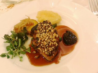 豚ロース肉のコーヒー風味ロースト 干しプラムソース(写真上右)