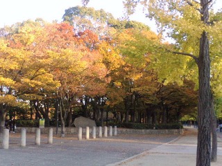 仕事後、ちょっとだけ道草。大阪城公園駅で下車してみました。いつも電車の窓から少しだけ見える大阪城天守閣。日差しは暖かくても、公園内の木々は少しずつ色づき始め秋の雰囲気です。