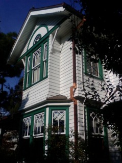 明治40年にアメリカ人宣教師マケーレブの居宅として建てられた豊島区内に現存する最古の近代木造洋風建築だそうです。白い外壁と緑の窓枠のコントラストがかわいい建物です。