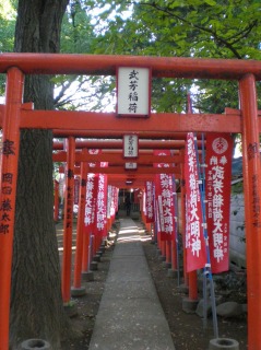 宣教師館を後にし、大鳥神社を過ぎ、雑司が谷鬼子母神へと向かいます。境内の武芳稲荷堂(たけよしいなりどう)への鳥居はお堂までいくつも並び、独特の雰囲気。