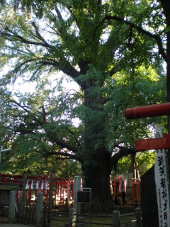 樹齢600年と言われる神木・大公孫樹(おおいちょう)は、近くで見るとさすがの迫力。また、境内には創業1781年という駄菓子屋さんがあります。
