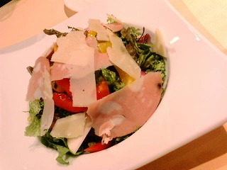 今回はコースではなく、アラカルトでのオーダーしてみました。前菜は有機野菜の気まぐれサラダ。続いて牡蠣と青菜のスパゲッティー。