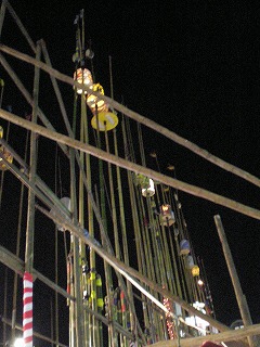 子供部門は少し竿の長さが短いようですが、提灯がボロボロになるまでぶつけ合い、火を消そうとする様はなかなかの迫力。容赦ない攻撃の繰り返しです。
