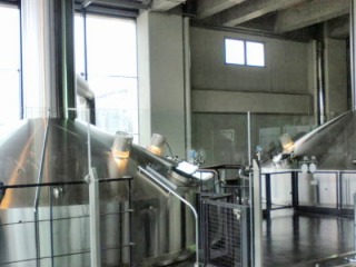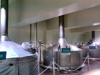 プレミアムモルツ講座のみ見学できるミニブルワリー。通常のタンクより小さく、プレミアムモルツ開発時に利用されたそうです。