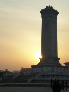 人民英雄記念碑。夕日が沈み出し、急に冷え始めました。