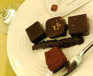 で、まずは、ショコラのお勉強からスタート。今回のパーティのテーマは、『ショコラとワインでWポリフェノール効果』 ということで、ショコラについての説明を聞き、デュキスタシオン 初挑戦