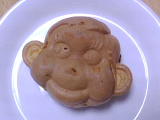 で、せっかくのポコちゃんなので、ペコちゃん焼きとツーショット。。ちなみに、このポコちゃん焼きの中味はチョコでした。